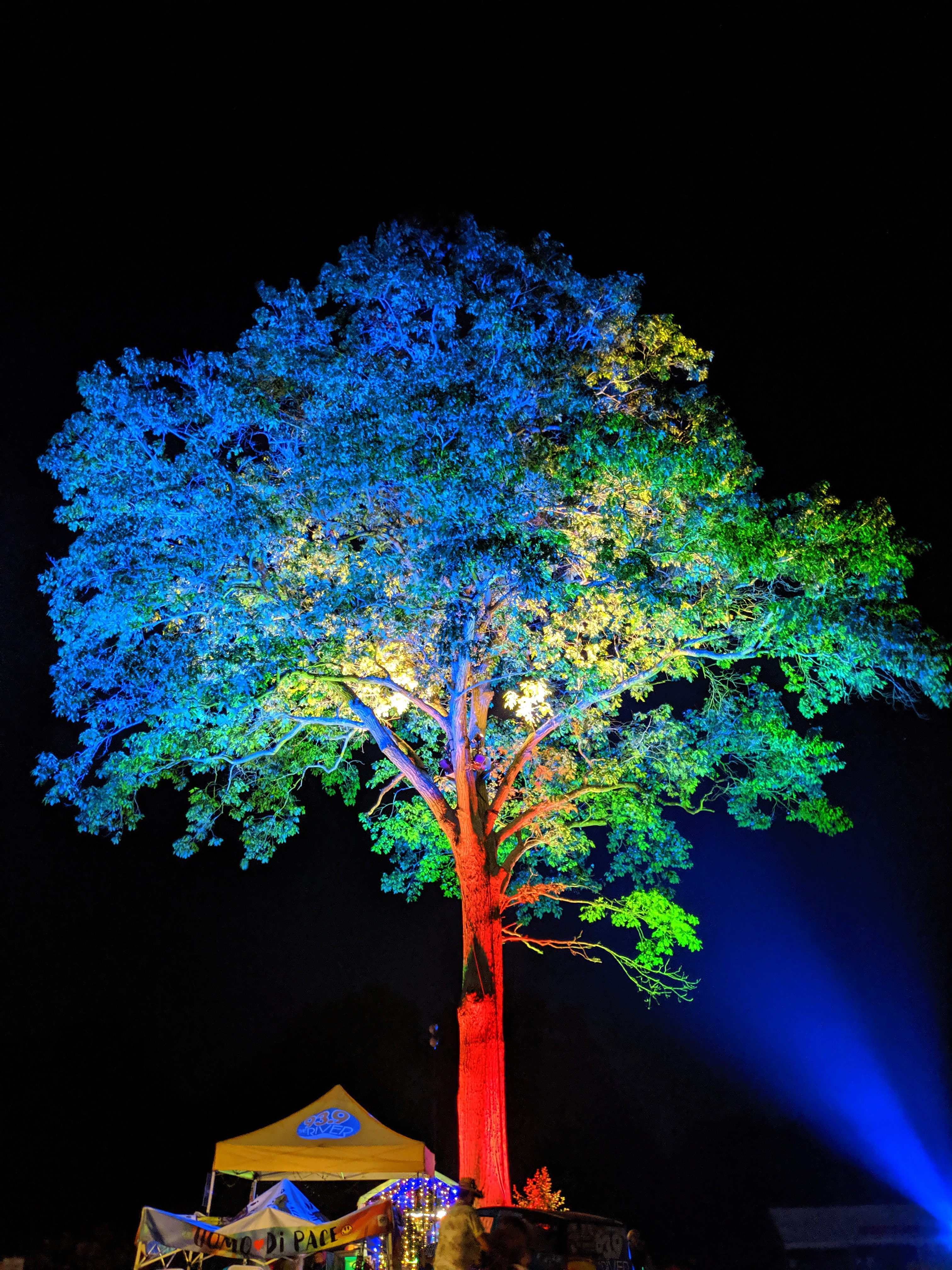 In 2019, Signature Sounds, long time presenter of The Green River Festival, was looking to add a new environmental element to their succesful festival. They approached Vilkas LLC with the open ended desire to bring some sort of lighting installation to the festival grounds. We worked with them through several design iterations to find an installation that would provide maximum impact within the budget available. The end result was a dynamic lighting installation on a large tree that stands alone at the center of the festival grounds. Revealed at sunset, the tree pulsed and danced to the music on the festival mainstage, creating an exciting focal point for the entire event.